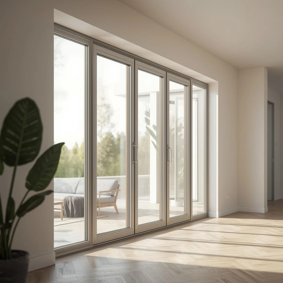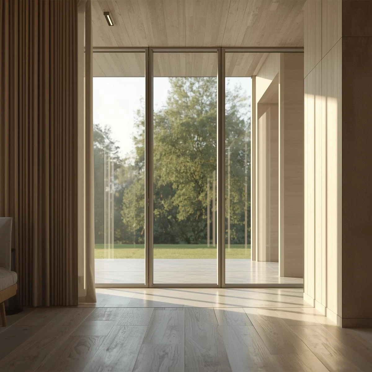 Fitted with 5mm clear float glass, it provides excellent visibility and natural brightness. Optional double-glazed or tinted glass can further improve thermal efficiency and sound insulation, making it a perfect choice for modern architectural facades and interiors.